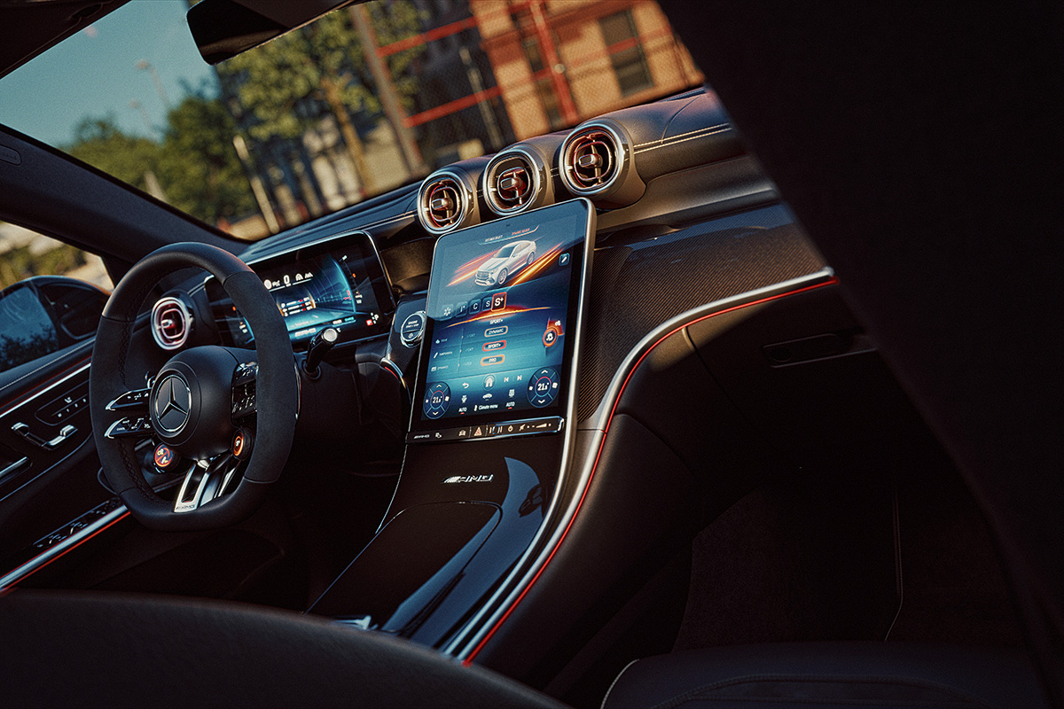 Doch Dynamik ist nicht nur Längsbeschleunigung. Das AMG RIDE CONTROL Fahrwerk und die serienmäßige Hinterachslenkung machen das Fahrzeug überraschend agil. Wer die volle Bandbreite der Fahrphysik auskosten möchte, greift zum AMG DYNAMIC PLUS Paket. Es enthält erstmals für ein AMG SUV einen Drift-Mode, der das System in einen reinen Hecktriebler verwandelt und so auf abgesperrten Strecken für emotionale Grenzmomente sorgt. Optisch lässt sich dieses Kraftpaket mit dem exklusiven „Golden Accents Paket“ veredeln, das mit techgoldenen Details und edlem Carbon im Interieur zeigt, dass Performance auch eine Frage des Stils ist.
