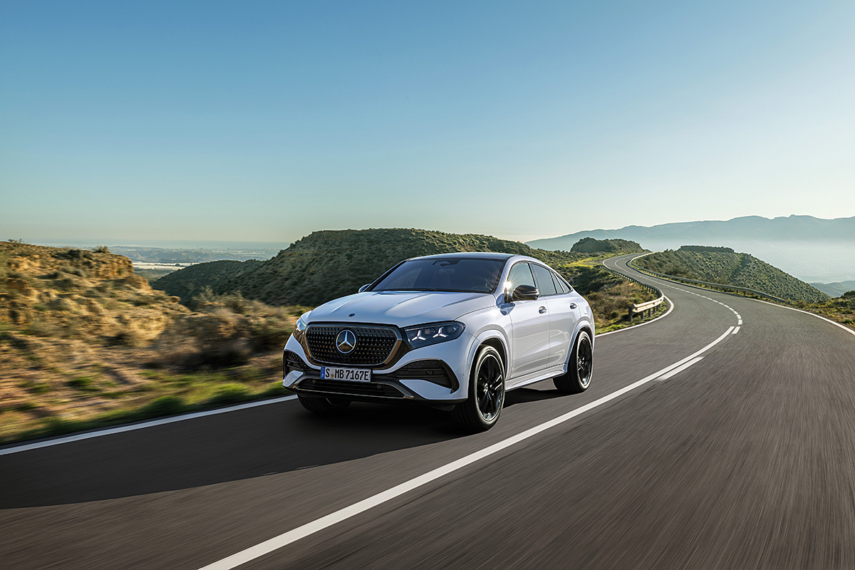 Es ist ein Fahrzeug, das die emotionale Linienführung eines Coupés mit der High-End-Technologie einer SUV-Baureihe verheiratet. Wer vor der neuen Front steht, blickt in ein Gesicht, das durch einen gewachsenen Kühlergrill und einen beleuchteten Zentralstern in einem markanten Chromrahmen Selbstbewusstsein ausstrahlt. Die neue Lichtsignatur mit Stern-Signets in den Scheinwerfern und Heckleuchten unterstreicht dabei den sportiven Charakter, während das dynamische Ultra-Range-Fernlicht der neuesten Digital-Light-Generation die Nacht auf einer Länge von sechs Fußballfeldern zum Erlöschen bringt.