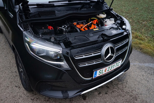 Der elektrische Antrieb liefert 150 kW/204 PS und bringt den EQV angenehm kraftvoll in Bewegung. Mit seinem hohen Drehmoment setzt er das schwere Fahrzeug ohne Verzögerung in Gang und sorgt für ein sehr souveränes Fahrgefühl. Die Beschleunigung ist mit 12,0 Sekunden von 0 bis 100 km/h für ein Fahrzeug dieser Größe absolut ausreichend, wichtiger ist jedoch die gleichmäßige, kräftige Leistungsentfaltung, die vor allem beim Überholen und auf Autobahnauffahrten spürbar ist. Die Höchstgeschwindigkeit von 140 km/h passt gut zum entspannten Reisekonzept und reicht für lange Etappen völlig aus.