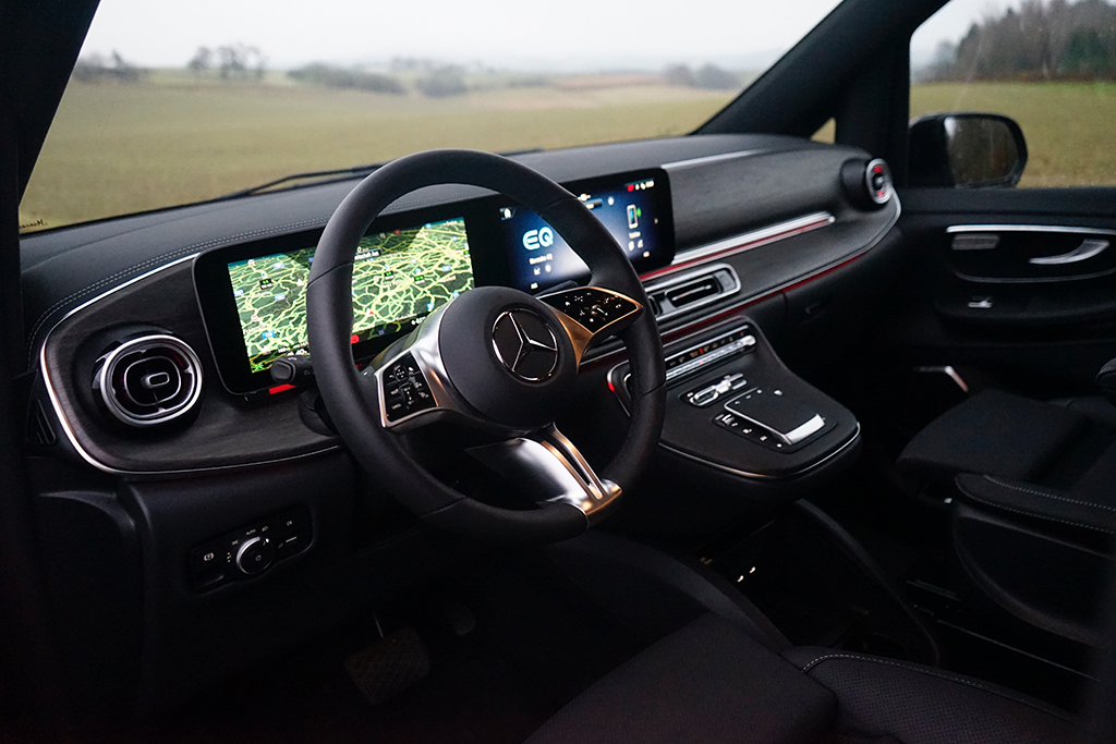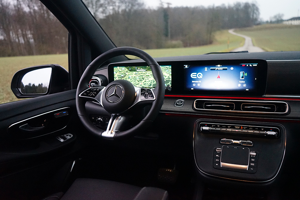 Auch fahrdynamisch überzeugt der EQV mit einer ruhigen, stabilen Abstimmung. Das Fahrwerk filtert schlechte Straßen souverän weg, die Lenkung wirkt präzise genug, um den großen Van sicher zu führen, und selbst bei voller Beladung bleibt das Fahrzeug gut kontrollierbar. Der elektrische Antrieb sorgt zudem für eine sehr niedrige Geräuschkulisse, was den Eindruck eines hochwertigen Reisefahrzeugs weiter verstärkt.