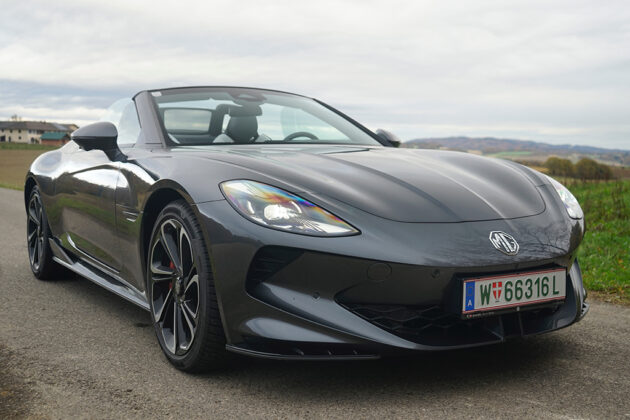 Fazit: Der MG Cyberster GT ist ein elektrischer Roadster, der uns mit seinem Design, seinen famosen Fahrleistungen und seinem offenen Charakter unmittelbar packt. Das elektrisch nach hinten faltende Stoffverdeck, die Scherentüren und die kraftvolle Beschleunigung machen ihn zu einem echten Erlebnis wie es sonst nur Supersportwagen bieten. Der fehlende Motorsound bleibt die einzige nostalgische Lücke, doch alles andere liefert pure Fahrfreude. Ein moderner, mutiger, fesch auftretender Roadster -Sportwagen, der beweist, dass Leidenschaft auch elektrisch entstehen kann. Der günstige Preis überrascht obendrein: der Cyberster steht ab 59.490 Euro in den Verkaufslisten! Dieser MG fährt in einer eigenen Liga – konkurrenzlos am derzeitigen Automobilmarkt!