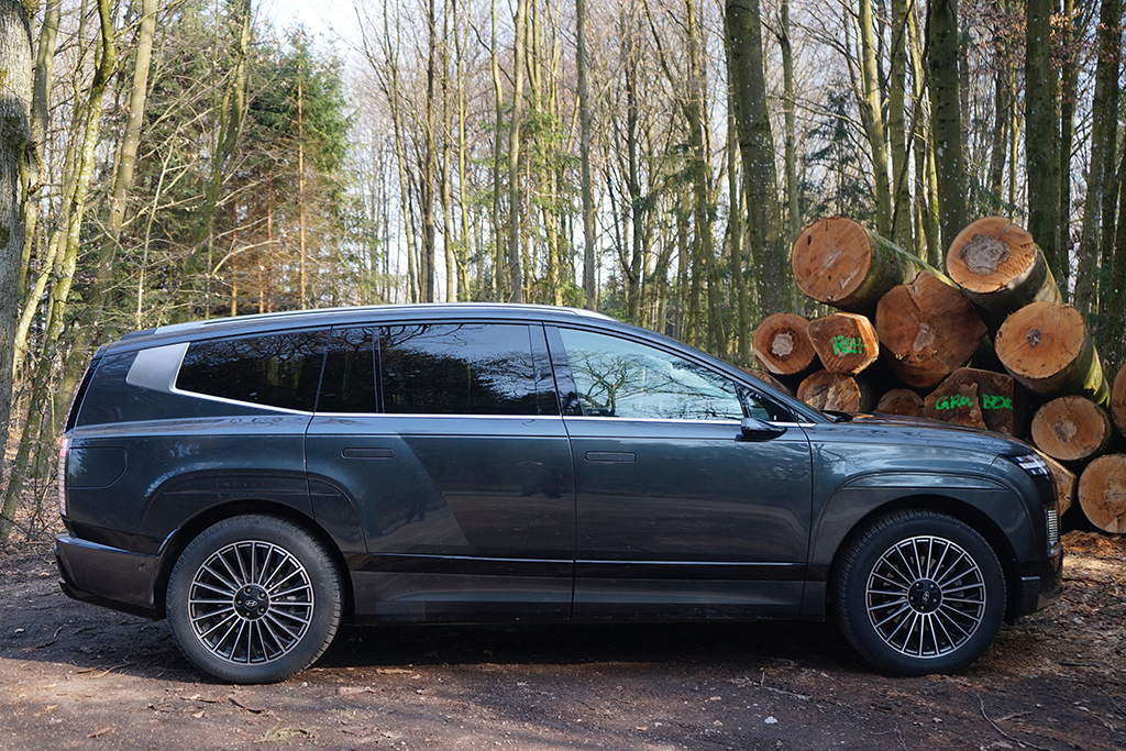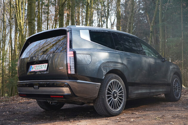 Gerade auf langen Strecken spielt der IONIQ 9 seine größten Stärken aus. Das Fahrwerk arbeitet souverän, Unebenheiten werden angenehm herausgefiltert und der Innenraum bleibt mit etwa 65 dB(A) angenehm ruhig. Das Fahrgefühl erinnert dabei tatsächlich an große englische Luxus-SUV – allerdings zu einem deutlich moderateren Preis.