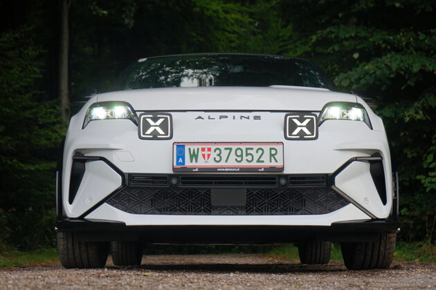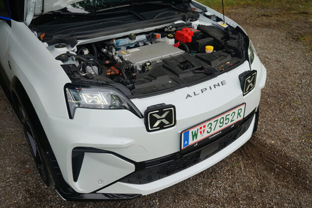 Unter der Haube – oder besser gesagt im Antriebsstrang – arbeitet ein Elektromotor mit 160 kW/ 218 PS, der die Vorderräder antreibt. Das Drehmoment steht sofort zur Verfügung, entsprechend katapultiert uns der A290 mit Nachdruck nach vorne. Der Sprint von 0 auf 100 km/h gelingt in rund 6,4 Sekunden, die Höchstgeschwindigkeit ist auf 170 km/h begrenzt. Für ein Fahrzeug dieser Größe fühlt sich das mehr als ausreichend an. Das Alpine-Sportfahrwerk sorgt für eine straffe Abstimmung, die das Auto satt auf der Straße liegen lässt. Dabei überrascht der Franzose mit einem guten Kompromiss: sportlich-direkt, aber nicht unkomfortabel. Besonders auf kurvigen Landstraßen macht das Auto enorm Spaß, die Lenkung ist präzise, die Bremsen mit ihren blauen Sätteln packen kraftvoll zu.