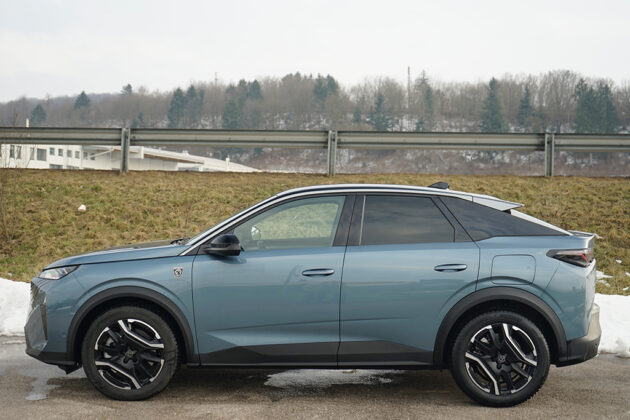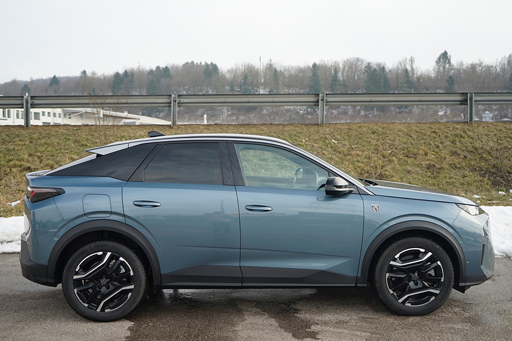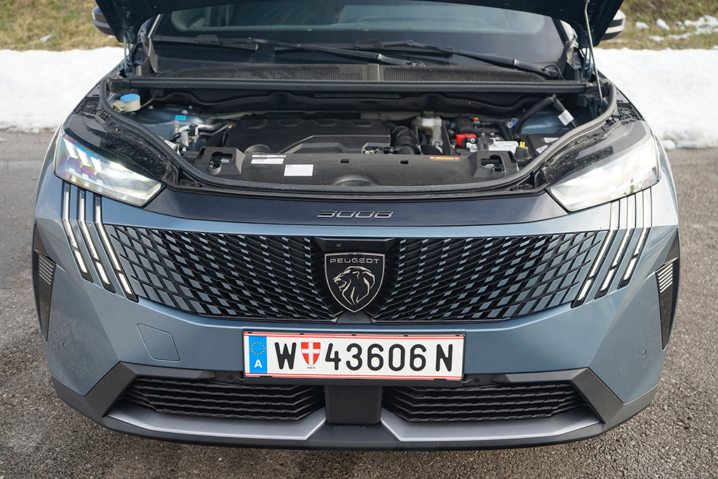 Der Plug-In-Hybridantrieb kombiniert einen Benzinmotor mit einem Elektromotor zu einer Systemleistung von 143 kW/195 PS. Damit ist der 3008 souverän motorisiert. Den Sprint von 0 auf 100 km/h erledigt er in 8,2 Sekunden, auch bei höheren Geschwindigkeiten stehen ausreichend Leistungsreserven zur Verfügung. Die Höchstgeschwindigkeit liegt bei 220 km/h. Das neue e-DCS7-Doppelkupplungsgetriebe „arbeitet weich und stilgerecht“. Das Fahrwerk ist sportlich gut abgestimmt und passt sehr gut zum GT-Charakter des Fahrzeugs.