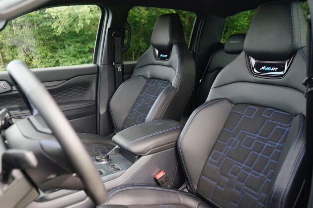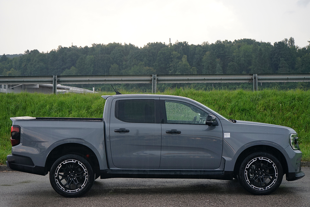 Schon beim ersten Blick signalisiert der Ford Ranger MS-RT, dass er mehr ist als ein Arbeitsgerät. Breite Backen, tiefergelegtes Fahrwerk und 21-Zoll-Räder machen ihn zum Sportler unter den Pick-ups – ohne dass er seine praktischen Gene verloren hätte.